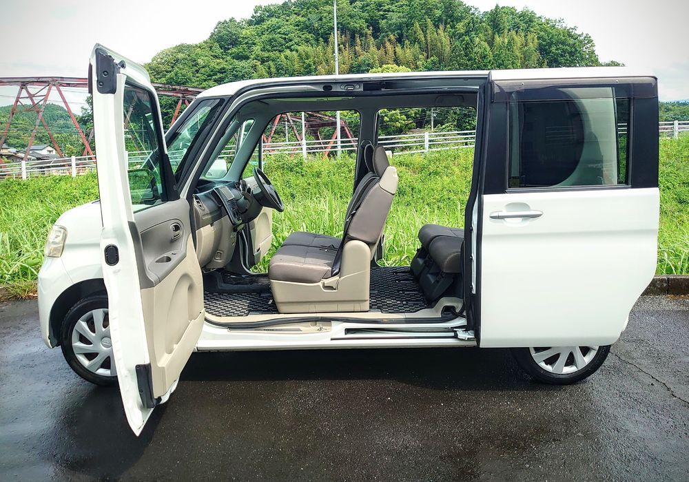 タントの代名詞的な機能「ミラクルオープンドア」を備えたモデルです。助手席ドアとその後ろのドア間の柱をなくすことで、全開時の乗り降りや荷物の出し入れがとってもラク。